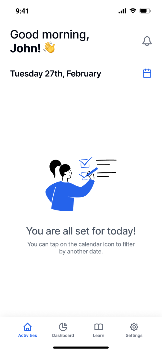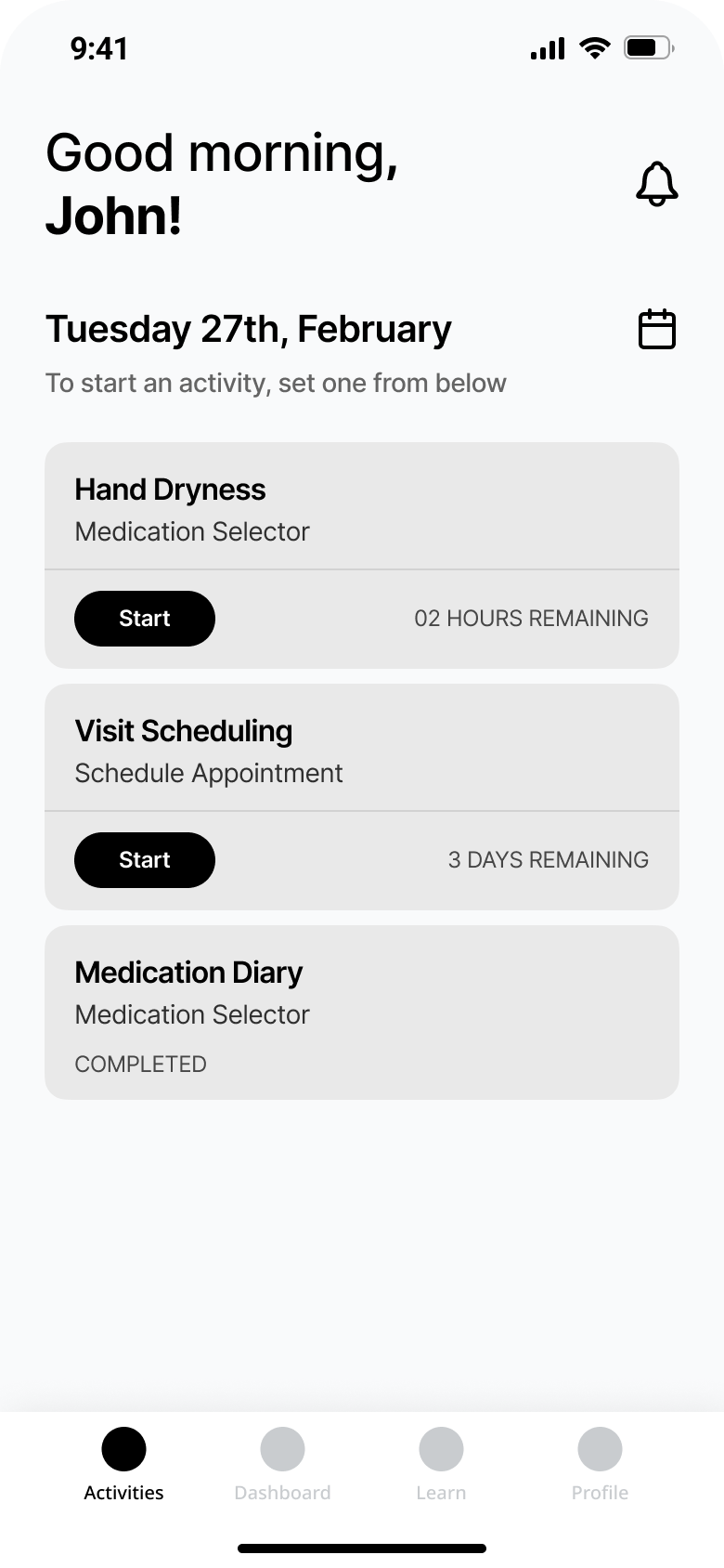 In the new version, the goal was to reduce clutters from screen as we shorten the path to activity completion. Also, being more clear on the goals and needs to each activity was a must, as the main personas were seniors and people with disability.