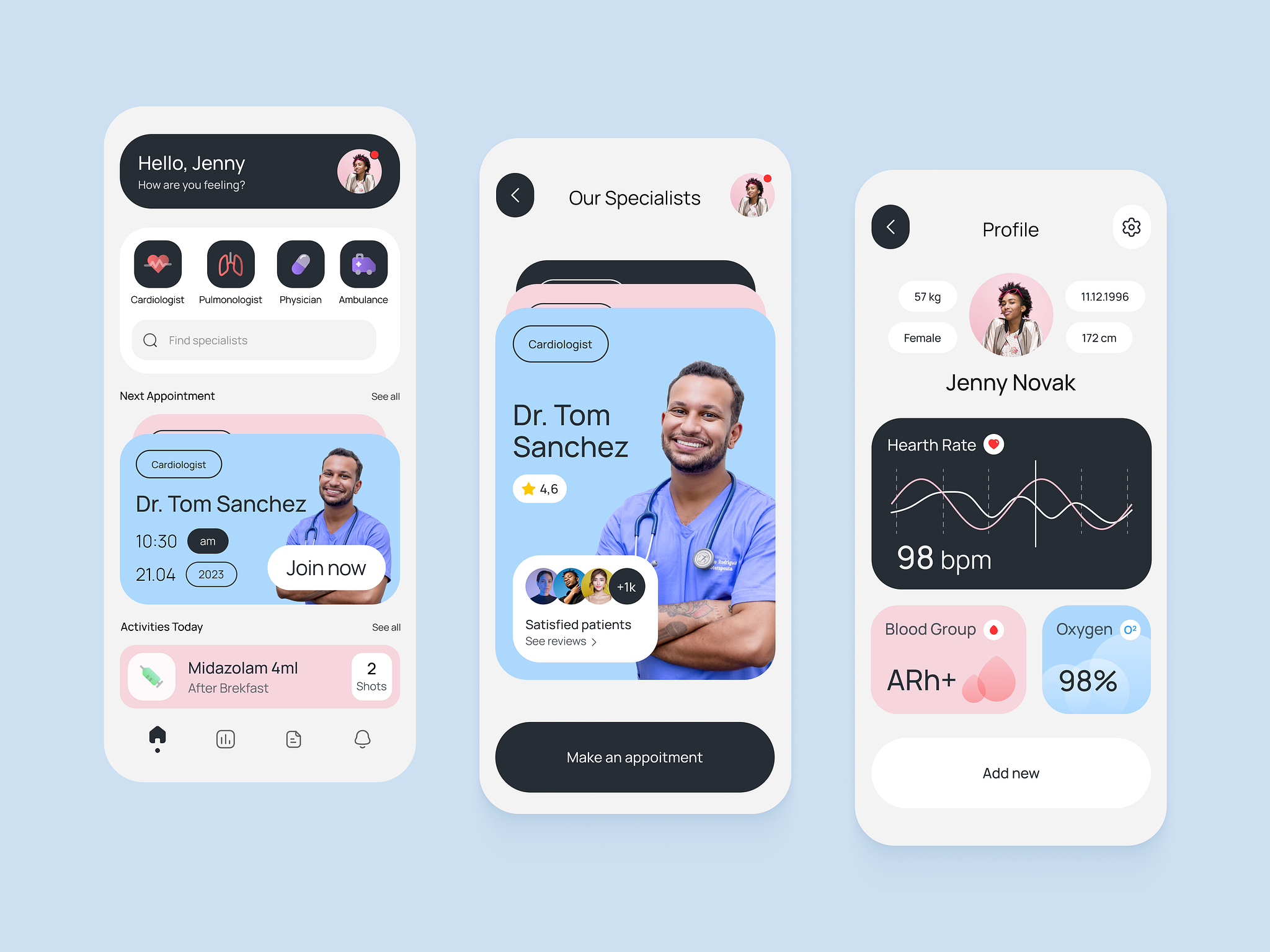 First, a glance into concepts for mobile health applications for visual inspiration.